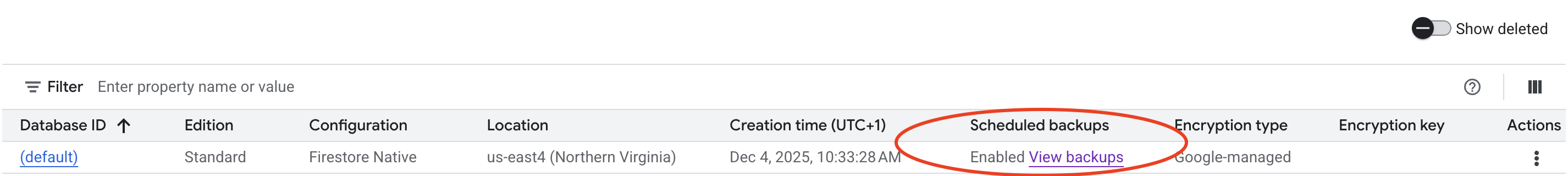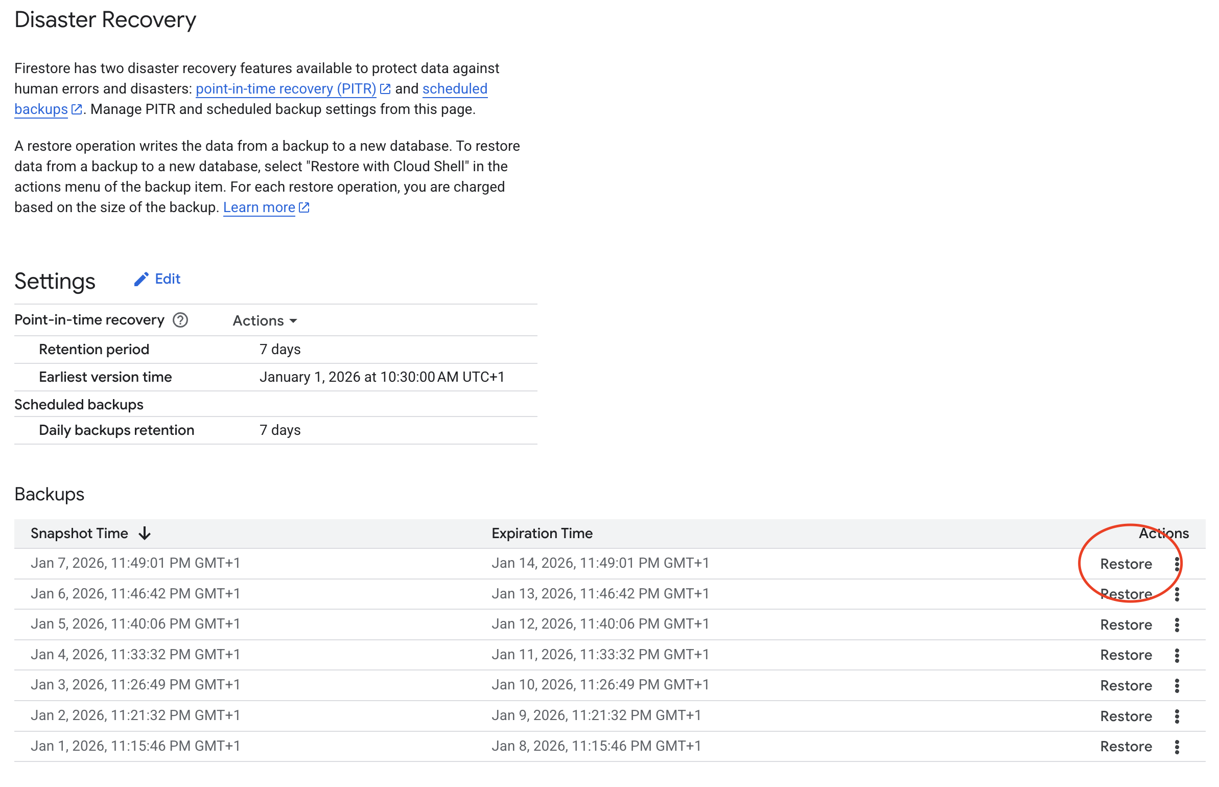 The restore operation is handled directly by Google Cloud and follows Firestore’s standard restore behavior.